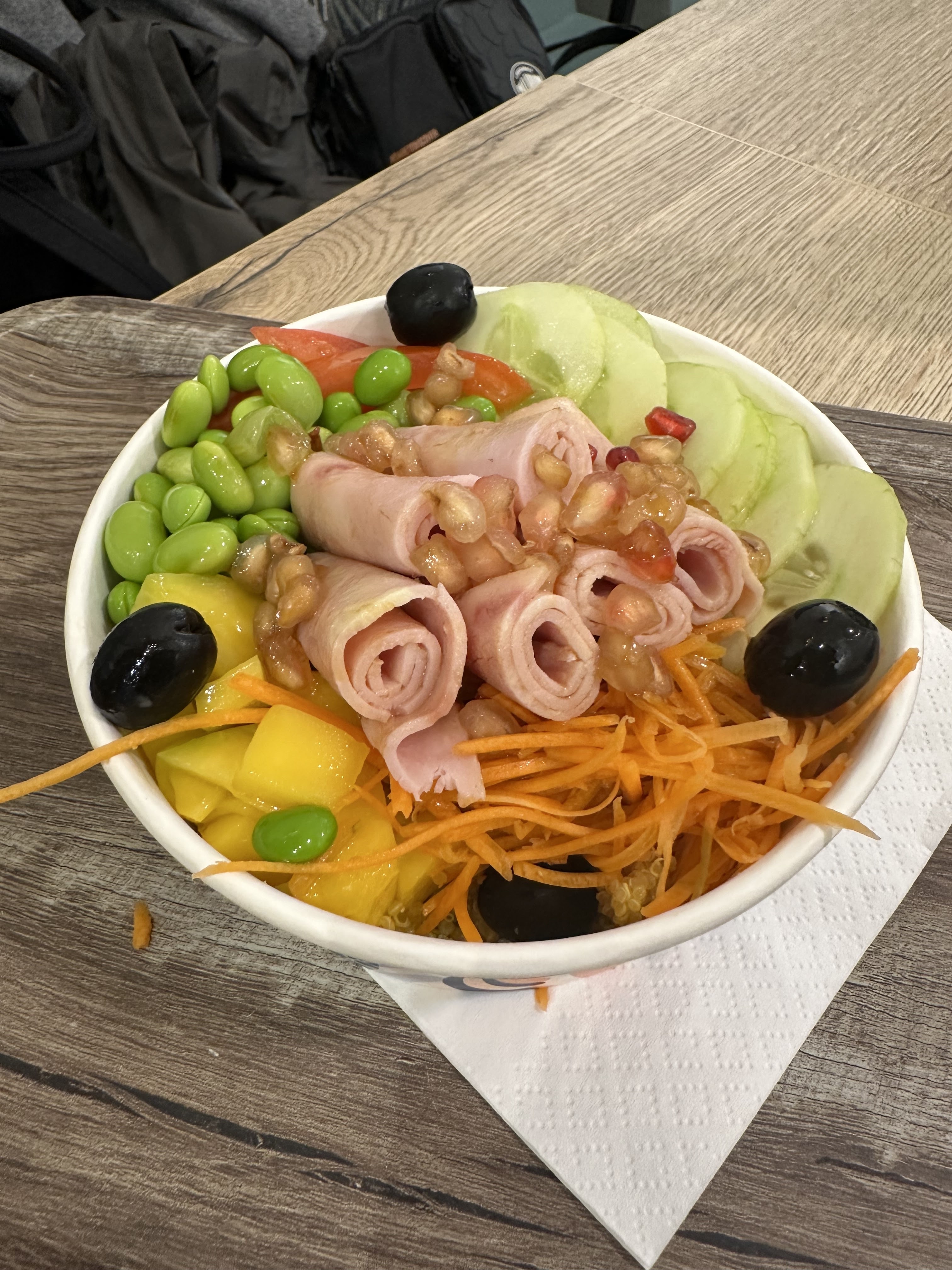 Posté le 03/10/2024 à 13:35"Visite ce jour. Equipe hyper sympa poké fraîches et bonnes. Par contre sur une commande deux erreurs : j'ai demandé une eau pétillante citron et j'ai eu une eau plate et j'ai demandé un cookie blanc cranberry et on m'a mis un chocolat. Bien vérifier vos commandes avant de quitter les lieux 😉"