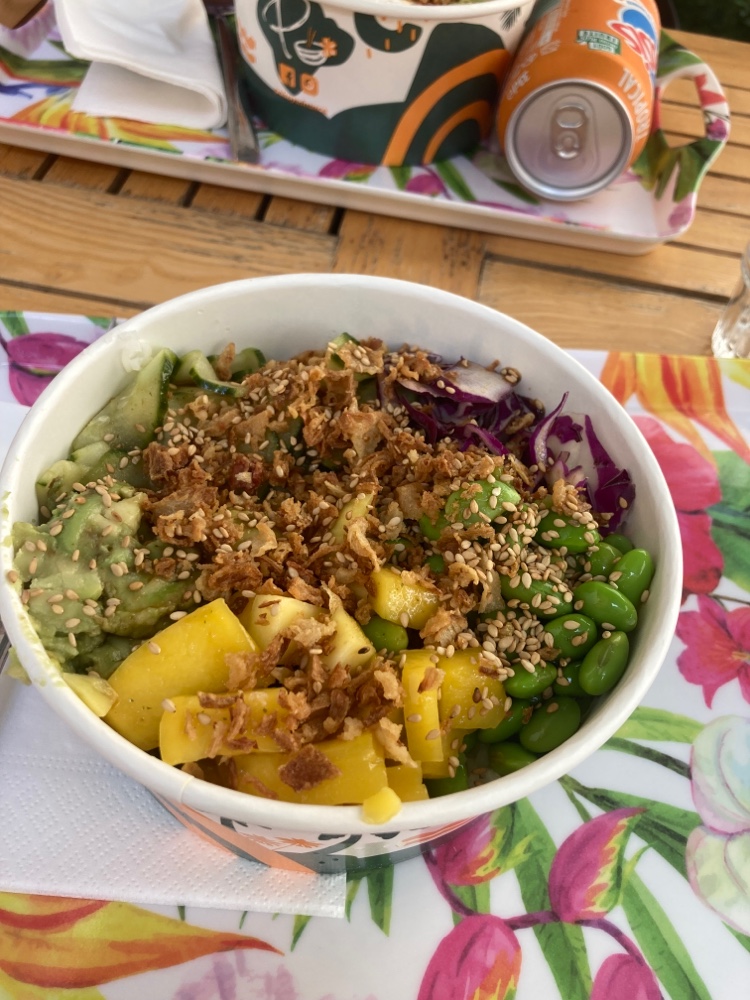 Posté le 12/07/2020 à 18:48"Lieu sympatique, terrasse extérieur à l'arrière. Pokebowl pas mal, manque un peut de saveur pour la sauce soja sucrée et la taille grande il y'a beaucoup trop de riz par rapport aux autres aliments. Mais l'ensemble était bon.. 👍"